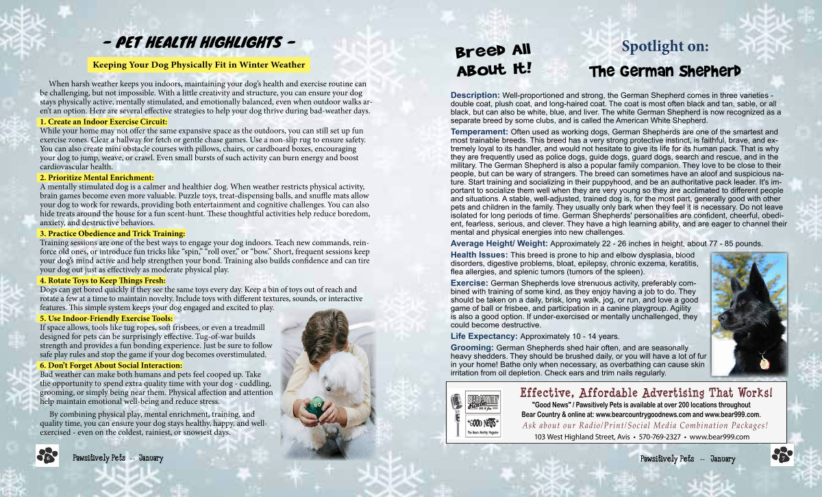 " Good News " / Pawsitively Pets is available at over 200 locations throughout Bear Country & online at: www. bearcountrygoodnews. com and www. bear999. com.