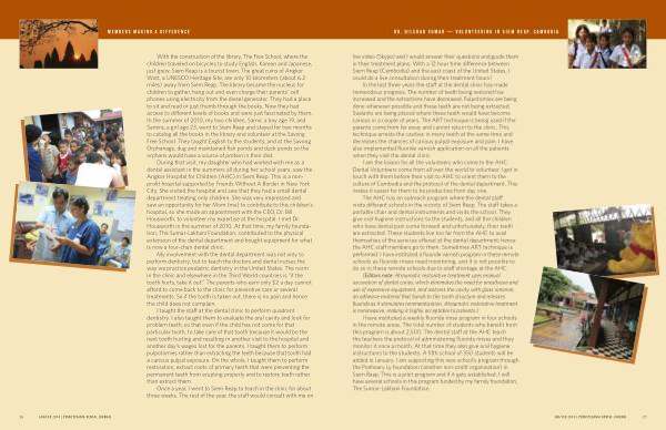 During that visit , my daughter who had worked with me as a dental assistant in the summers all during her school years , saw the Angkor Hospital for Children ( AHC ) in Siem Reap . This is a nonprofit hospital supported by Friends Without A Border in New York City . She visited the hospital and saw that they had a small dental department treating only children . She was very impressed and saw an opportunity for her Mom ( me ) to contribute to this children ’ s hospital , so she made an appointment with the CEO , Dr . Bill Housworth , to volunteer my expertise at the hospital . I met Dr . Housworth in the summer of 2010 . At that time , my family foundation , The Sumar-Lakhani Foundation , contributed to the physical extension of the dental department and bought equipment for what is now a four-chair dental clinic .