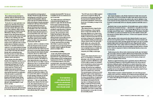 The California Business and Professions Code permits dental hygienists and assistants to apply silver diamine fluoride for the control of caries because they are topical fluorides( Section 1910.( b)). Physicians, nurses and their assistants are permitted to apply fluorides in California and in many other states and federal programs. The recent decision of the Oregon Dental Board to allow dental hygienists and assistants to place silver diamine fluoride under existing rules for topical fluoride medicaments sets a precedent. Dental hygienists and assistants in Oregon were barred from providing silver nitrate in a previous decision. All providers need to be trained. Applications should be tracked if applied to the same patient by multiple clinics.