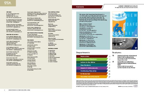 $36/year; International subscriptions available at $75/year. Single copies $10. Periodical postage paid at Harrisburg, PA. “The Pennsylvania Dental Association, although formally accepting and publishing reports of the