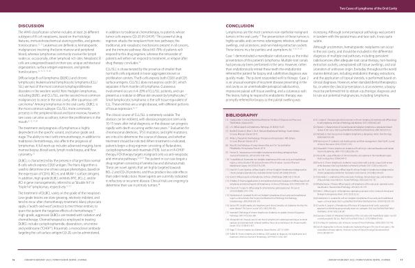 Diffuse large B-cell lymphoma ( DLBCL ) and chronic lymphocytic leukemia / small lymphocytic lymphoma ( CLL / SLL ) are two of the most common lymphoproliferative disorders in the western world . Non-Hodgkin lymphomas , including DLBCL and CLL / SLL , are the second most common malignancies to arise in the oral cavity , after squamous cell carcinoma . 8 Among lymphomas in the oral cavity , DLBCL is the most common subtype . CLL / SLL more commonly presents in the peripheral blood and bone marrow , however rare cases can arise as solitary , tumor-like proliferations in the