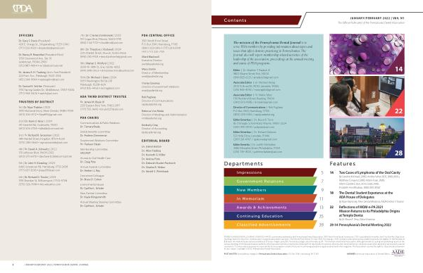 JANUARY / FEBRUARY 2022 | V89 , N1 The Official Publication of the Pennsylvania Dental Association