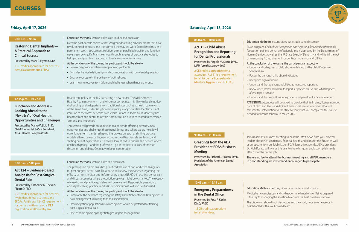 10 JANUARY / FEBRUARY 2026 | PENNSYLVANIA DENTAL JOURNAL
