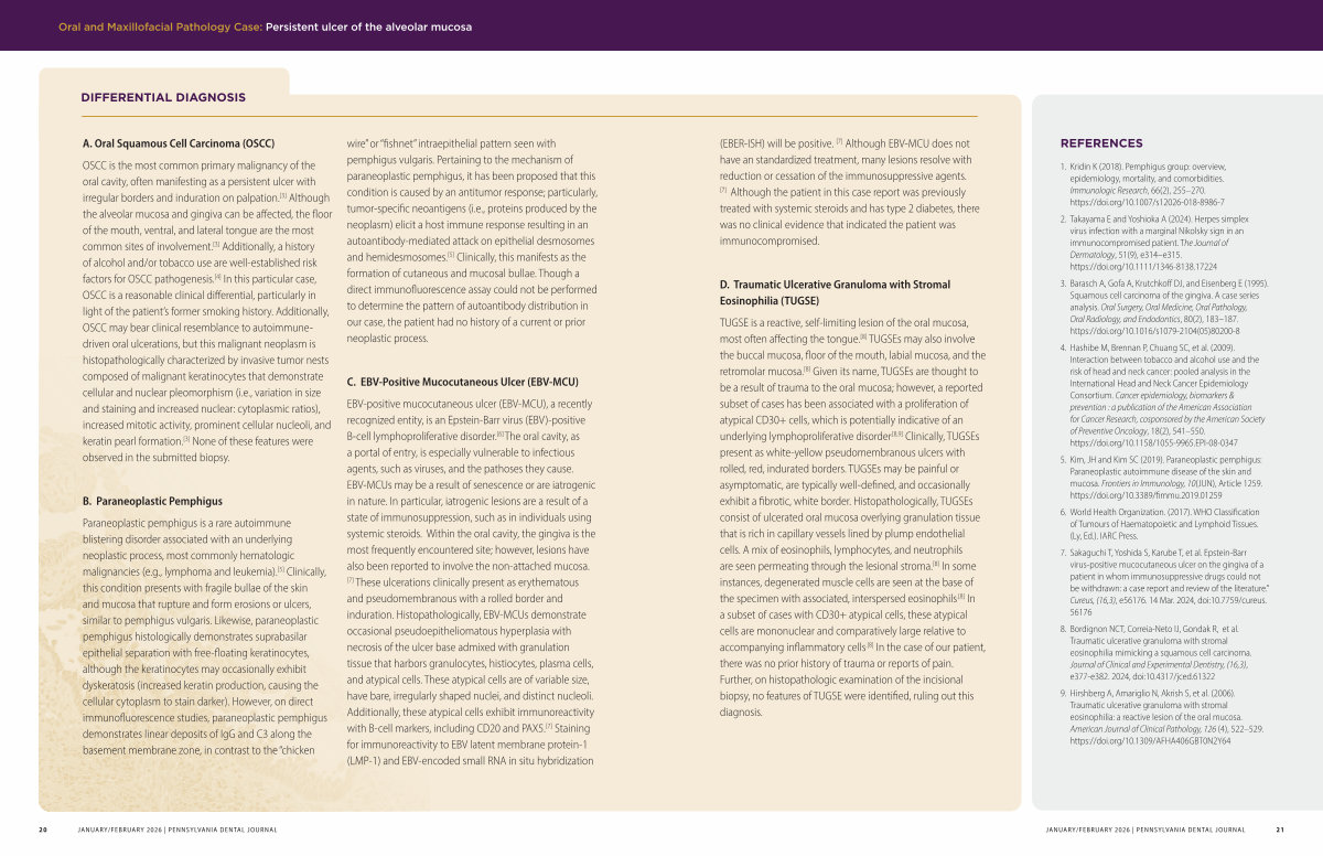 7. Sakaguchi T, Yoshida S, Karube T, et al. Epstein-Barr virus-positive mucocutaneous ulcer on the gingiva of a patient in whom immunosuppressive drugs could not be withdrawn: a case report and review of the literature.” Cureus,( 16,3), e56176. 14 Mar. 2024, doi: 10.7759 / cureus. 56176