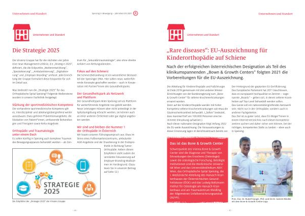 Was bedeutet nun die „ Strategie 2025 “ für das Orthopädische Spital Speising ? Folgende Meilen steine wurden in unserer Fachklinik festgelegt :
