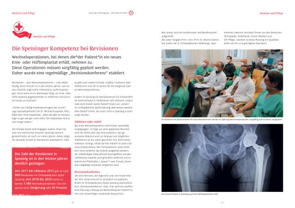 Um eine Revision , die logistisch und vom Know-how her sehr anspruchsvoll ist , gründlich vorzuplanen , findet im Orthopädischen Spital Speising wöchentlich eine „ Revisionskonferenz “ statt . Hier wird die ausführliche Planung in Bezug auf Behandlung der Patient * innen und notwendiger Implantate besprochen .