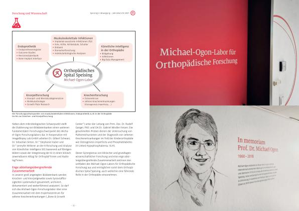 Dieser Synergismus von klinischer und grundlagenwissenschaftlicher Forschung und eine enge abteilungsübergreifende Zusammenarbeit zeichnen den Leitfaden des Michael-Ogon-Labors für Orthopädische Forschung aus und ermöglichen somit dem Orthopädischen Spital Speising , auch weiterhin eine führende Rolle in der Orthopädie einzunehmen .
