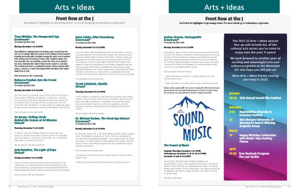 We look forward to another year of exciting and meaningful arts and culture programs at the Weinstein JCC and hope you will join us !