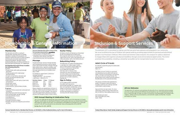 Contact Danielle Harris , Membership Director , at 545-8635 or dharris @ weinsteinjcc . org for more information . 4 Weinstein JCC | 2022 Spring Activity Guide