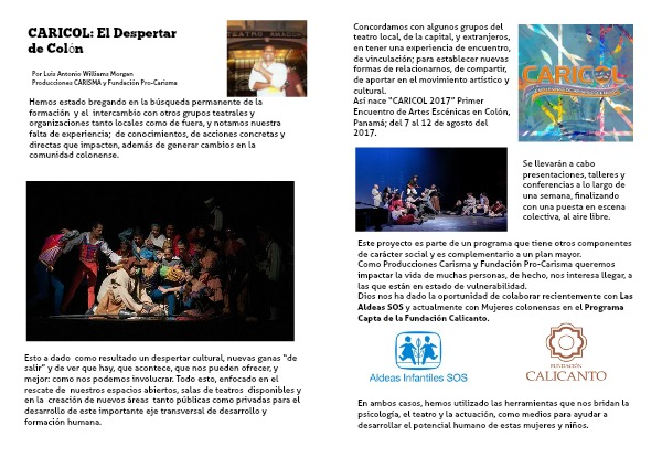Así nace “CARICOL 2017” Primer Encuentro de Artes Escénicas en Colón, Panamá; del 7 al 12 de agosto del 2017.
