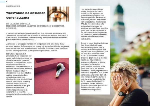 Los pacientes que están en mayor riesgo de sufrir esta condición son aquellos con padecimientos psiquiátricos, obesidad, historia de abuso de sustancias, historia de trauma o con antecedentes familiares de TAG. Se debe sospechar esta patología si tenemos a un paciente que manifiesta excesiva preocupación no relacionado a un solo evento estresor por más de seis meses, especialmente si existen síntomas asociados a este evento.