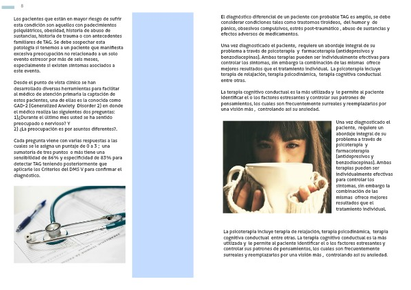 Desde el punto de vista clínico se han desarrollado diversas herramientas para facilitar al médico de atención primaria la captación de estos pacientes, una de ellas es la conocida como GAD-2 (Generalized Anxiety Disorder 2) en donde el médico realiza las siguientes dos preguntas: