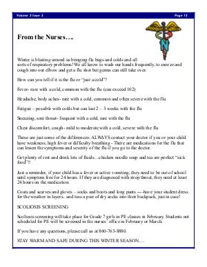 Scoliosis screening will take place for Grade 7 girls in PE classes in February. Students not