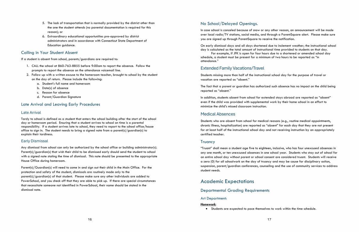 Tardy to school is defined as a student that enters the school building after the start of the school day or homeroom period. Ensuring that a student arrives to school on time is a parental responsibility. If a student arrives late to school, they need to report to the school office / house office to sign in. The student needs to bring a signed note from a parent( s)/ guardian( s) to explain their tardiness.