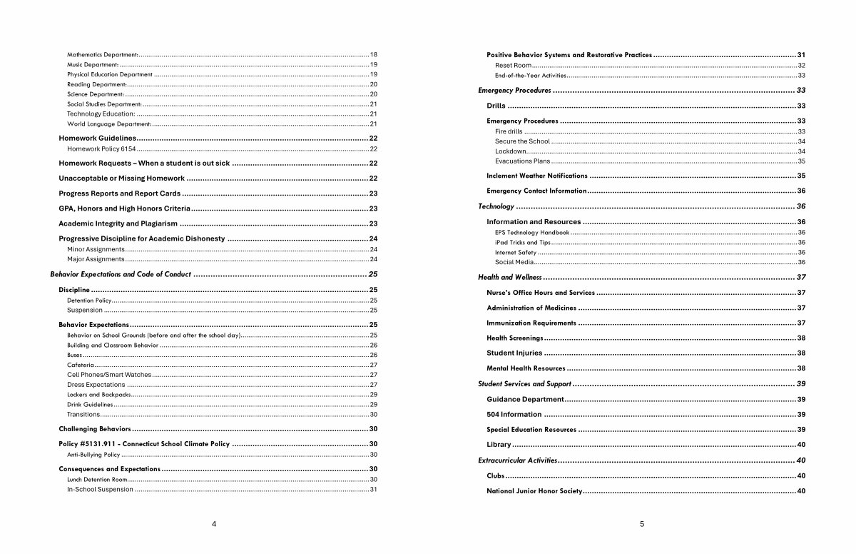Extracurricular Activities................................................................................................. 40 Clubs................................................................................................................................ 40 National Junior Honor Society.............................................................................................. 40
