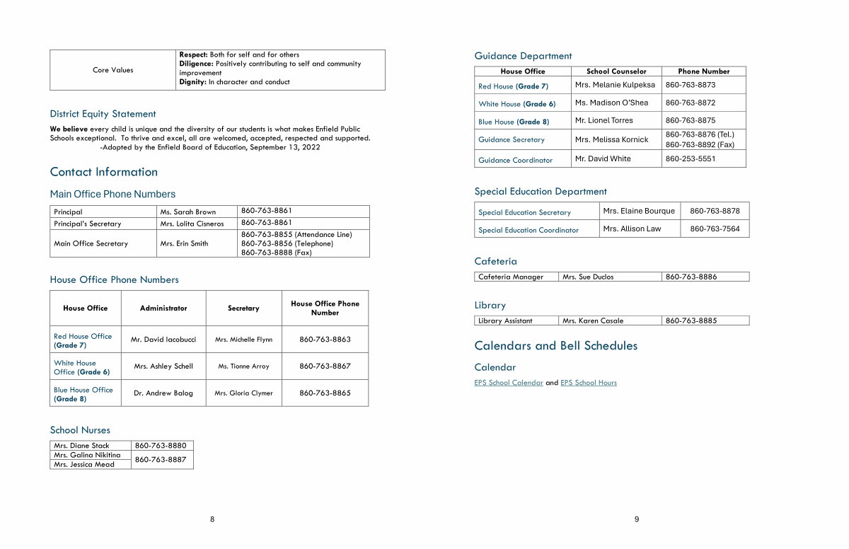 House Office School Counselor Phone Number Red House( Grade 7) Mrs. Melanie Kulpeksa 860-763-8873 White House( Grade 6) Ms. Madison O’ Shea 860-763-8872 Blue House( Grade 8) Mr. Lionel Torres 860-763-8875 Guidance Secretary