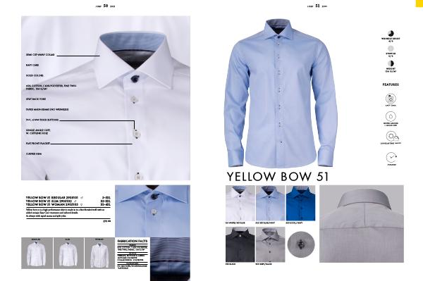 Yellow bow 51 is a high performance shirt is made in in a fine blended twill with an added unique Easy Care treatment and tailored details . As always with taped seams and split yoke .