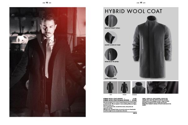 We call it the Hybrid , as it is a mix of a typical classical wool coat and a zipped up technical jacket . We were inspired to create something different yet elegant , that had our name on it . It has a modern stand collar , concealed front closure , chest pocket and impeccable stitching . Well-fitted with a ¾ length , Perfect to be worn for work over a formal jacket but still nice length for your everyday leisure adventures .