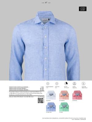 Passez l ’ été en chemise ! Couleurs tropicales pour cette chemise 100 % lin , avec un effet délavé et un toucher très doux . La seule chemise qui mérite d ’ être portée froissée pour un look décontracté tout en restant raffiné . |