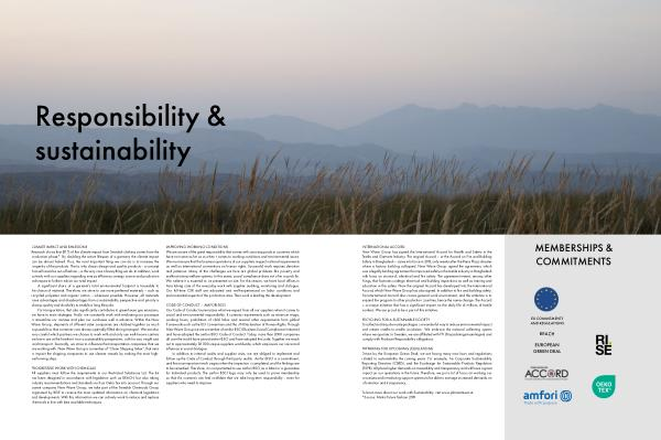 PREPARING FOR UPCOMING LEGISLATIONS Driven by the European Grean Deal, we are facing many new laws and regulations related to sustainability the coming years. For example, the Corporate Sustainability Reporting Directive( CSRD), and the Ecodesign for Sustainable Products Regulation( ESPR). All place higher demands on traceability and transparency and will have a great impact on our operations in the future. Therefore, we put a lot of focus on working our processes and introducing support systems to be able to manage increased demands on information and transparency.