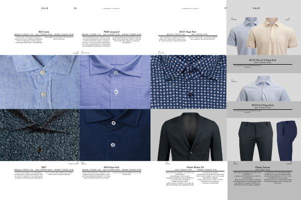 TELA JAQUARD EN TONOS AZULES, TEJIDA EN FINO MICROPATRÓN. 100 % ALGODÓN COMPACTO DE FIBRA LARGA- DOBLE 100. 130 G / M ². CON UNA NUEVA E INNOVADO- RA ELASTICIDAD MECÁNICA. TRATAMIENTO MEDIOAMBIENTAL PATENTADO NON-IRON.