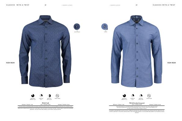 ESTAMPADO JAQUARD ÍNDIGO EN DOS TONOS. SUPERFICIE CEPILLADA PARA MAYOR SUAVIDAD. 100 % ALGODÓN DE FIBRA LARGA 125 G / M ², ELÁSTICO MECÁNICO. NON-IRON. MANGA LARGA. PUÑO SUAVE REDONDEADO CON OJAL EXTRA PARA GEMELOS. BOTONES DE 4 MM DE GROSOR.