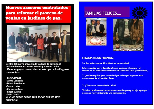 Dentro del nuevo proyecto de jardines de paz esta el reclutamiento de asesores nuevos para reforzar los diferentes grupos comerciales. en esta oportunidad ingresan con nosotros: