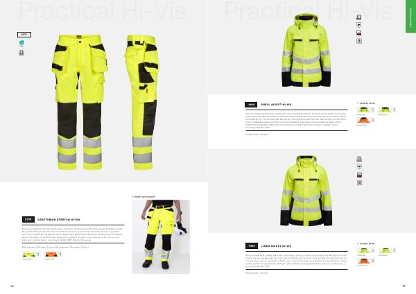 Easy-care polyester / cotton that retains colour and shape. Stretch panels at the back for extra flexibility. Detachable zip-off holster pockets with extra Compartment and extra zip pocket. Back pockets with flap. Leg pocket with extra compartment and flap with velcro closure. Ruler pocket with knife pocket. Reinforcement on kneepad pocket. Kneepads can be fitted in two positions for optimal fit. Trousers can be extended with 5 cm turn-up at ankle hem. Certified Class 2 according to EN ISO 20471. Wash in 40 degrees