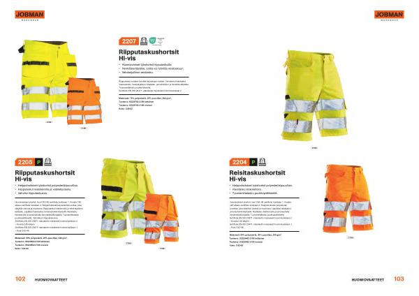 • Huomioväriset työshortsit riipputaskuilla .