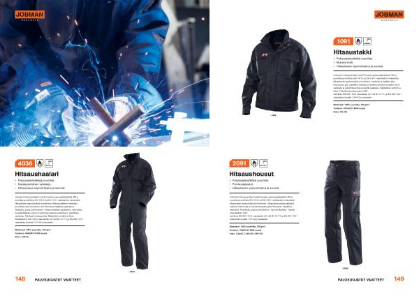 Jobmanin hitsausvaatteet ovat Pyrovatex-palosuojakäsiteltyä 350 g puuvillaa ja sertifioitu EN 11612- ja EN 11611 -standardien mukaisesti . Hitsaukseen sopivat taskut ja toiminnot . Vetoketju ja tuulilista ylös kaulukseen asti . Läpälliset rintataskut . Sisäänommellut etutaskut . Suuri sisätasku ja puhelinlokerolla varustettu sisätasku . Säädettävä vyötärö ja hihat . Yhdistä hitsaushousuihin 2091 . Sertifioitu EN ISO 11612 -standardin ( A1 + A2 B1 C1 F1 ) ja EN ISO 11611 -standardin ( luokka 1 A1 + A2 ) mukaisesti .