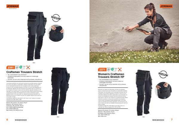 Werkbroek voor dames van 4-way stretch met delen van duurzaam geweven materiaal bij de enkel , beenzakken en holsterzakken . Afritsbare holsterzakken met extra vakken en een verstevigde binnenkant die in de voorzakken kunnen worden opgeborgen . De broek is voorzien van een comfortabele tailleband met stretch , paspelzakken op de achterzijde , een hamerlus , een liniaalzak met meszak en een zak op het been met rits , telefoonvak en ruimte voor een ID-kaart . De voorgevormde knieën hebben kniebeschermerzakken van duurzaam polyamide en de kniestukken kunnen op twee verschillende hoogtes geplaatst worden om de beste positie voor optimale bescherming te garanderen . De achterzijde van de knie is voorzien van mesh voor ventilatie . Broek kan bij de zoom met 5 cm worden verlengd . Gecertificeerd volgens EN 14404:2004 + A1:2010 Type 2 Level 1 in combinatie met Jobman kneepads 9943 , 9944 and 9945 .
