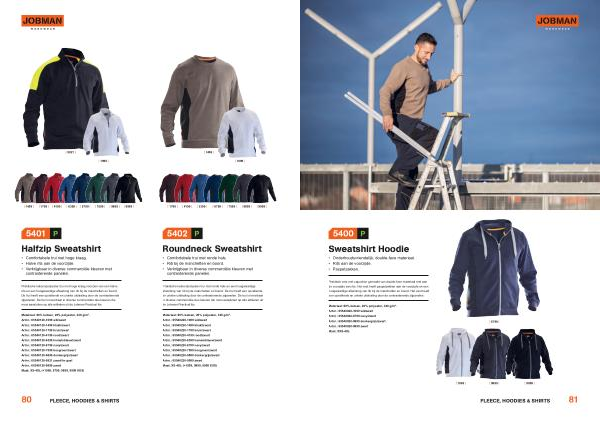 Materiaal : 80 % katoen , 20 % polyester , 320 g / m ². Artnr .: 65540020-1099 wit / zwart Artnr .: 65540020-6799 navy / zwart Artnr .: 65540020-9899 donkergrijs / zwart Artnr .: 65540020-9999 zwart Maat : XXS-4XL