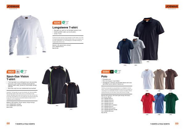 Materiaal : 65 % polyester , 35 % katoen ( grijs melange : 85 % katoen , 15 % viscose ), 200 g / m 2 . Artnr .: 65556430-1000 wit Artnr .: 65556430-1400 khaki Artnr .: 65556430-1700 bruin Artnr .: 65556430-4100 rood Artnr .: 65556430-6300 hemelsblauw Artnr .: 65556430-6700 navy Artnr .: 65556430-7500 bosgroen Artnr .: 65556430-9300 grijs melange Artnr .: 65556430-9900 zwart Maat : XS-3XL