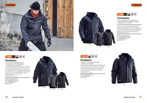 Varmforet , vattert , vind- og vanntett jakke med tapede sømmer . Doble brystlommer ; to med klaff og borrelås og to med vanntett glidelås . Frontlommer med klaff og glidelås . Tre innerlommer , to med glidelås og én med borrelås . Regulerbar på ermene og i nederkanten . Refleksdetaljer på lommer og nederst på ryggen . Vattert hette med snøring , avtagbar med trykknapper . Vannsøyle : 23 000 mm . Pusteevne : 3300 g / m ² 24 h . Sertifisert ifølge EN343 for regntøy .