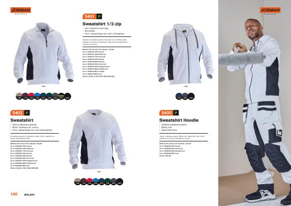 Material : 80 % bomull , 20 % polyester , 320 g / m ². Art nr : 65540020-1099 vit / svart Art nr : 65540020-6799 marin / svart Art nr : 65540020-9899 mörkgrå / svart Art nr : 65540020-9999 svart Storlek : XXS-4XL