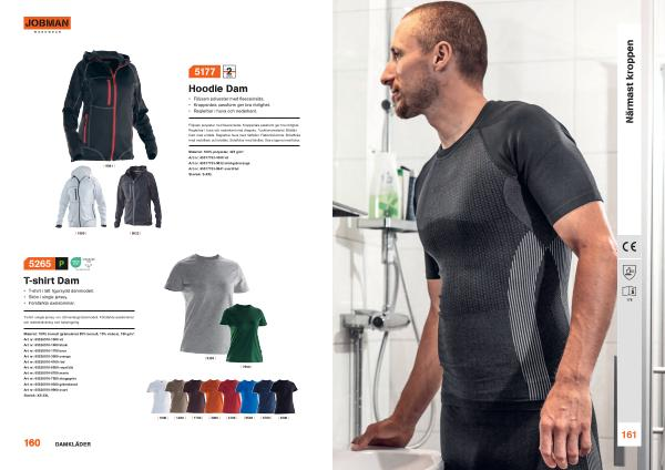 Material : 100 % polyester , 325 g / m ². Art nr : 65517753-1000 vit Art nr : 65517753-9832 mörkgrå / orange Art nr : 65517753-9941 svart / röd Storlek : S-XXL