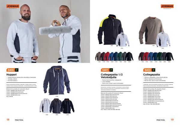 Materiaali : 80 % puuvillaa , 20 % polyesteriä , 320 g / m ². Tuotenro : 65540020-1099 valkoinen / musta Tuotenro : 65540020-6799 mariini / musta Tuotenro : 65540020-9899 tummanharmaa / musta Tuotenro : 65540020-9999 musta Koko : XXS-4XL