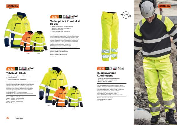Veden- ja tuulenpitävä toppatakki teipatuin saumoin . Runsaasti rintataskuja , joista kahdessa läppä ja tarranauhakiinnitys ja kahdessa vedenpitävä vetoketju . Etutaskut , joissa läppä ja vetoketju . Kolme sisätaskua , joista kahdessa verkkokangas ja vetoketju ja yhdessä tarranauhakiinnitys . Tarranauhoin säädettävät hihansuut . Irrotettava painonapillinen huppu , jossa kiristysnauha . Vesipilari : 23000 mm . Hengittävyys : 3300 g / m ² 24h . Sertifioitu sadeasuksi EN 343 -standardin mukaisesti . Sertifioitu EN ISO 20471 -standardin mukaisesti huomioluokkaan 3 .