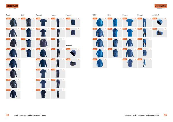 44 17 14 12 13 20 20 19 19 22 22 23 6 4 4 3 3 8 8 7 7 5 36 36 18 15 11 13 12 10 17 16 5501 5901 1203 1327 1317 1284 1384 7501 7502 7507 7517 5400 5522 5533 5264 5265 5402 5564 5401 2313 2322 2324 2325 2317 2316 2321 2722 3730 2723 9040 9284 14 1201 Asusteet SISÄLLYSLUETTELO VÄRIN MUKAAN / NAVY Housut Housut Puserot Livit Takit