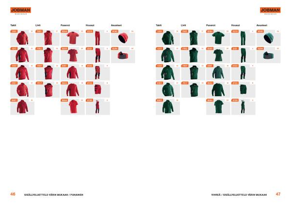 47 17 14 12 13 20 20 19 19 23 6 4 4 8 5 36 36 14 13 12 17 16 5501 5901 1201 1327 1317 7501 7502 7507 7517 5264 5265 5402 5564 5401 2313 2322 2321 2722 3730 9040 9284 Asusteet VIHREÄ / SISÄLLYSLUETTELO VÄRIN MUKAAN Housut Puserot Livit Takit