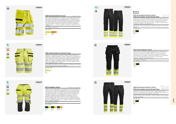 Varselbyxa för serviceyrken i lättskött polyester / bomull som håller färg och form. Stretchpaneler på bakstycket, för ökad rörlighet. Rymliga framfickor. Bakfickor med lock. Benficka med extra fack och ficklock med kardborrestängning. Tumstocksficka. Byxbenet kan förlängas med 5 cm genom ett utvik i benslutet. Certifierad i varselklass 1 enligt EN ISO 20471.