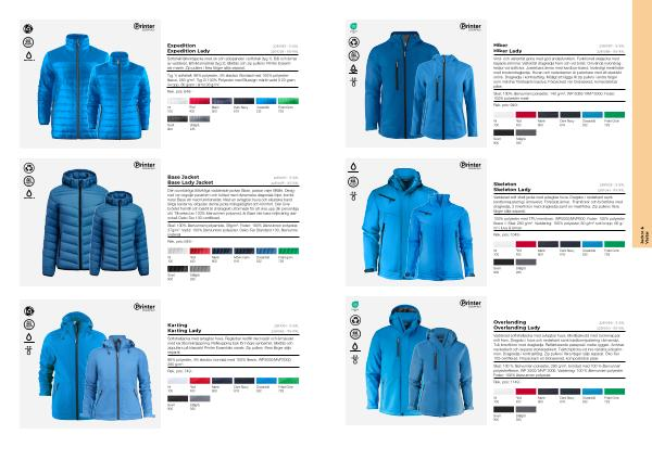 100 % polyester med TPU membran. WP5000 / MVP800. Foder: 100 % polyester fleece // Skal: 280 g / m ². Vaddering: 100 % polyester, 80 g / m ² runt kropp, 60 g / m ² i luva & ärmar