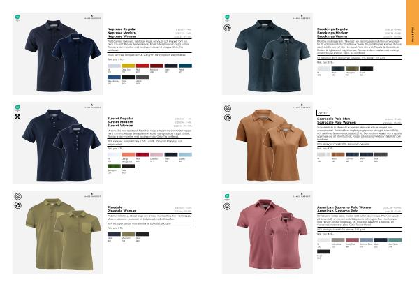 Pikétröja med nackband, flatstickad krage, ärmmudd och knappar ton i ton. Finns i tre snitt; Regular är klassiskt rak, Modern är tightare och något kortare, Woman är dammodellen med insvängd midja och 5 knappar. Oeko-Tex certifierad.