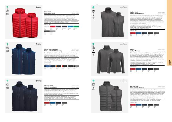 Yttertyg: 100 % återvunnen polyester, laminerad med 100 % återvunnen polyesterfleece, 280 g / m ². Foder( ärmar och fickor): 100 % återvunnen polyester, 58 g / m ². WP 3000 / MVP 3000 – testad enligt ISO 811:2018 och ASTM E96 / 96M