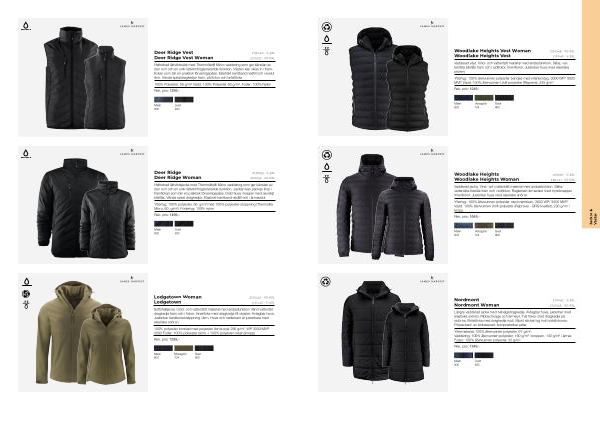 Yttertyg: 100 % återvunnen polyester med membran, 3000 WP / 3000 MVP. Vadd: 100 % återvunnen Unifi-polyester( Repreve)- GRS-kvalitet), 230 g / m ² i kropp.