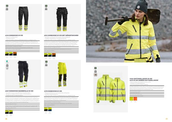 Material : 100 % Polyester , 280 g / m ². Zertifiziert : EN ISO 20471 Class 3 Größe : Herren XS-4XL , Damen XS-2XL Art . -Nr: Herren 65120255 , Damen 65121055