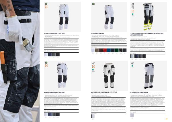 Pflegeleichtes , farb- und formbeständiges Polyester- / Baumwollgewebe . Stretch-Einsätze an der Rückseite für mehr Beweglichkeit . Geräumige Fronttaschen . Gesäßtaschen mit Klappe . Beintasche mit zusätzlichem Fach und Klappe mit Klettverschluss . Zollstocktasche mit Messertasche . Verstärkung an Kniepolstertasche und in zwei Positionen verstellbar . Hose kann dank 5 cm Aufschlag am Beinabschluss verlängert werden .