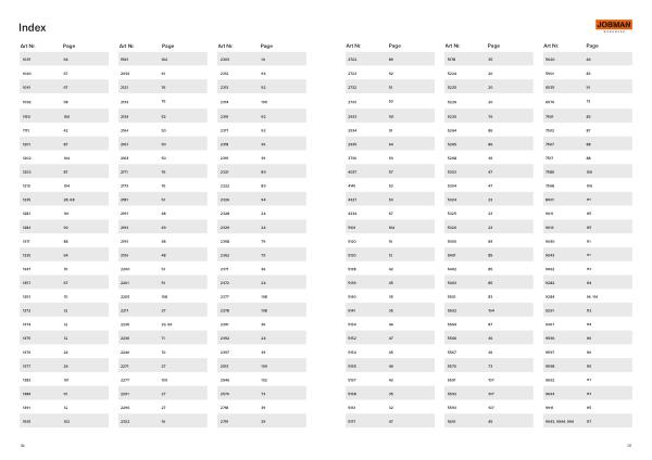 126 1035 64 1040 67 1041 67 1092 58 1150 106 1179 42 1201 87 1202 104 1203 87 1210 104 1235 28 , 68 1283 101 1284 90 1317 88 1335 64 1347 70 1357 67 1359 70 1372 32 1374 32 1375 32 1376 24 1377 24 1383 101 1384 91 1391 32 1565 102 1566 102 2092 61 2129 76 2133 79 2134 52 2164 50 2167 50 2168 50 2171 76 2179 76 2181 51 2191 48 2194 49 2195 48 2196 48 2200 51 2201 51 2205 108 2217 27 2235 29 , 69 2236 71 2240 70 2271 27 2277 109 2291 27 2296 27 2302 14 2303 14 2312 94 2313 92 2314 109 2316 92 2317 92 2318 39 2319 39 2321 89 2322 89 2326 94 2328 24 2329 24 2358 79 2362 79 2371 36 2372 24 2377 108 2378 108 2391 36 2392 24 2397 39 2513 109 2546 102 2570 73 2718 39 2719 39 Index Art Nr . Page Art Nr . Page Art Nr . Page