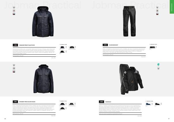 Lämminvuorinen talvitakki, tuulen- ja vedenpitävä. Teipatut saumat. Runsaasti rintataskuja, joista kahdessa läppä ja tarranauhakiinnitys, kahdessa vedenpitävä vetoketju. Etutaskut, joissa läppä ja vetoketju. Kolme sisätaskua, joista kahdessa vetoketju ja yhdessä tarranauhakiinnitys. Säädettävät hihat ja helma. Heijastavat yksityiskohdat taskuissa ja alaselässä. Irrotettava painonapillinen huppu. Vesipilari: 23 000 mm. Hengittävyys: 3300 g / m 2 24 h. Sadeasusertifioitu EN343: n mukaan. |