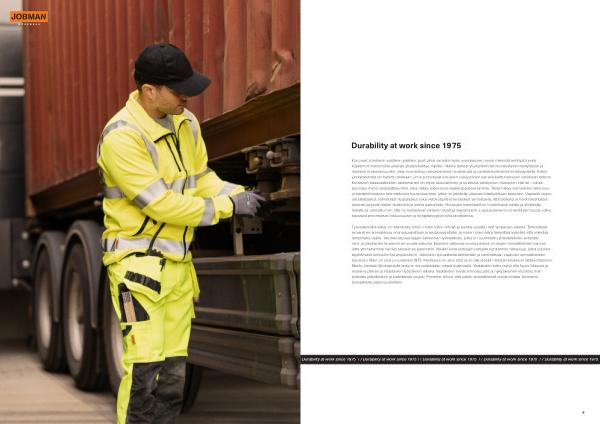 Työvaatevalinnallasi on vaikutusta siihen, miten hyvin viihdyt ja kuinka suojattu olet työpäiväsi aikana. Työvaatteet eroavat eri ammateissa ominaisuuksiltaan ja kestävyydeltään, ja niiden tulee sekä lämmittää kylmällä että viilentää lämpimällä säällä. Jobman tarjoaa laajan valikoiman työvaatteita, jotka on suunniteltu yhdisteltäviksi erilaisten sisä- ja ulkotöiden tarpeisiin eri vuodenaikoina. Käymme jatkuvaa vuoropuhelua eri alojen ammattilaisten kanssa, jotta ymmärrämme heidän tarpeensa paremmin. Näiden keskustelujen pohjalta kehitämme ratkaisuja, jotka sopivat täydellisesti kuhunkin työympäristöön. Jobmanin työvaatteita kehitetään ja valmistetaan vaativien ammattilaisten tarpeisiin. Näin on ollut jo vuodesta 1975. Kestävyys on aina ollut ja on jatkossakin meidän keskeisin lähtökohtamme. Meille Jobman Workwearilla laatu ei ole pelkästään oikeat materiaalit. Vaatteiden tulee myös olla hyvin liikkuvia ja mukavia pitkien ja haastavien työpäivien aikana. Vaatteiden hyvät ominaisuudet ja nykyaikainen muotoilu mahdollistaa pitkäikäisen ja luotettavan suojan. Pyrimme siihen, että kaikki ammattilaiset voivat kantaa Jobmanin työvaatteita ylpeinä päivittäin.
